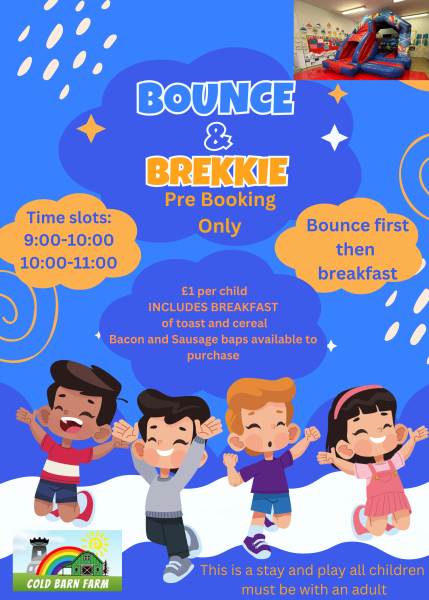 For just £1 Children will have up to 1 hour on our bouncy castle, followed by breakfast of toast or cereal and squash