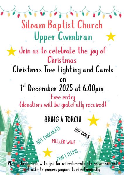 Come and join us singing Christmas carols around the Christmas tree and the switching on of its lights. Refreshments are available. The event starts at 6.00PM, there is no entrance fee however we will accept donations.