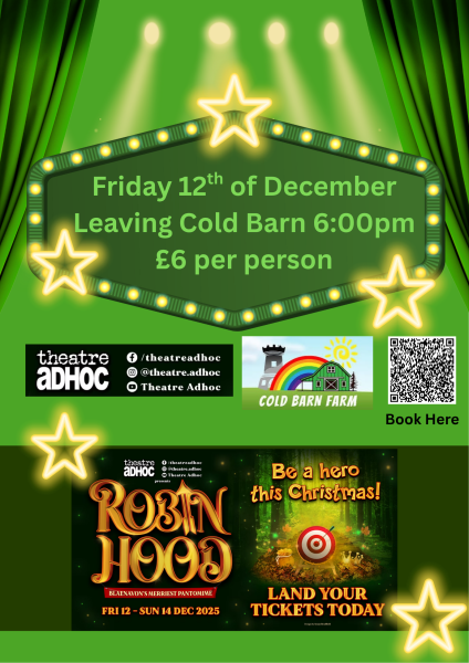 Cold Barn Farm are running a bus trip to Blaenavon Workmen's Hall to watch 'Robin Hood' brought to you by Theatre Ad'Hoc.