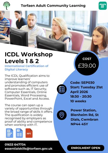 The ICDL Qualification aims to improve learners’ understanding of computers and promotes efficient use of software such as, IT Security, Computer Essentials, Online Essentials, Word Processing, PowerPoint, Excel and Access.