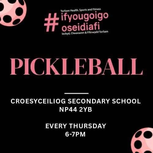 Women's pickleball sessions run every Thursday from 6pm-7pm in Croesyceiliog Secondary School. Sessions are in partnership with Torfaen Pickleball Club and cost £3 per session. Make friends, have fun and learn how to play Pickleball in a relaxed environment. Suitable for all abilities. Follow the IYGIG pickleball Facebook page to book onto the session and for more information.