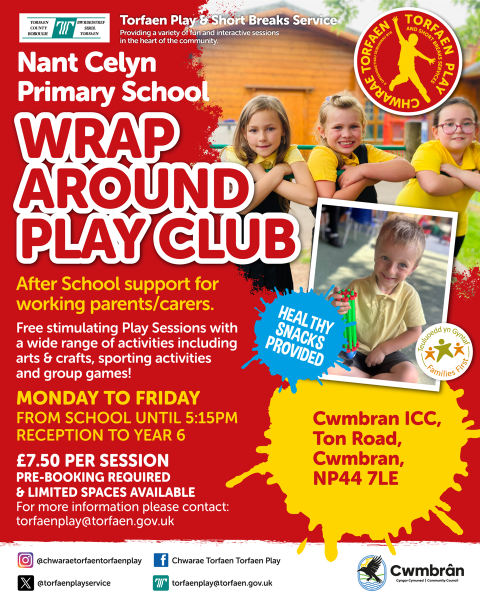 Nant Celyn Primary Wraparound Play Club - Mon to Fri from school to 5.15pm, Reception to Year 6