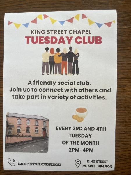 The Tuesday Club is a social group for anyone looking to get out, connect, and meet new people. We are a friendly and welcoming group, with something different at every session — from talks and games to tea and cake. We meet on the 3rd and 4th Tuesday of each month.