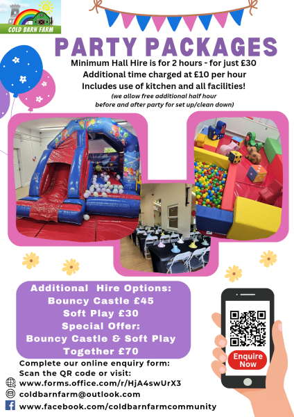 Cold Barn Farm is available for hire for your party or event.